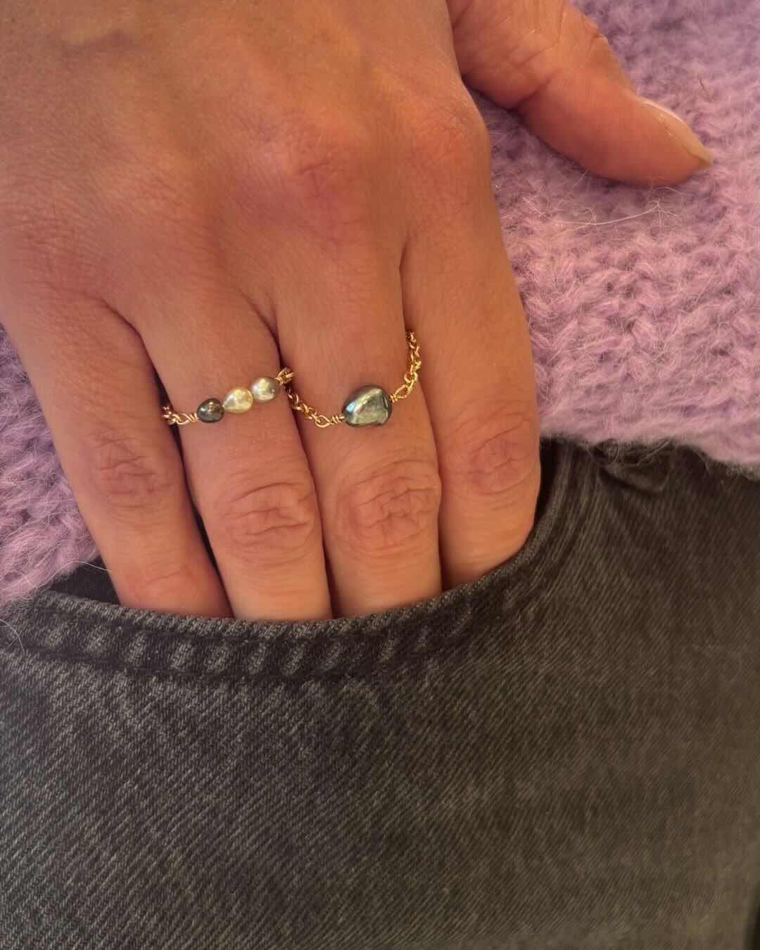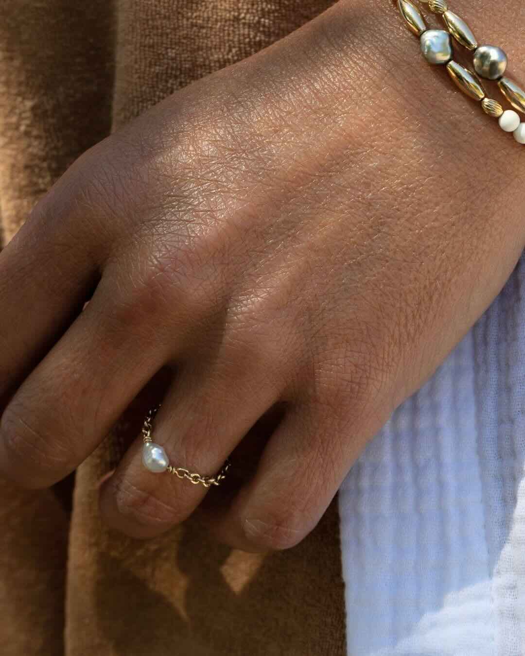 Chaque bague est réalisée à la main dans notre atelier nantais avec des perles véritables et du plaqué or 18 carats, vous garantissant une qualité et une durabilité exceptionnelles.