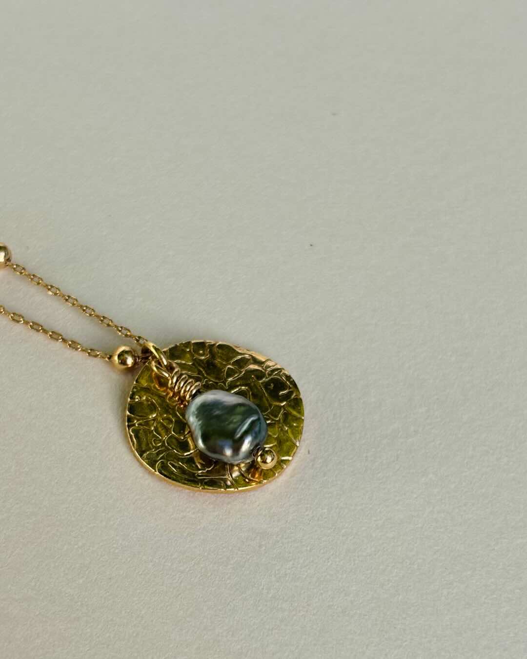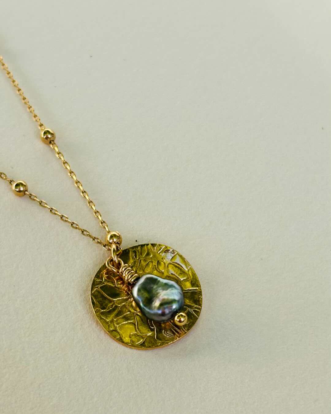 COLLIER SWEET DREAM, MÉDAILLE MARTELÉE - KESHI FONCÉ