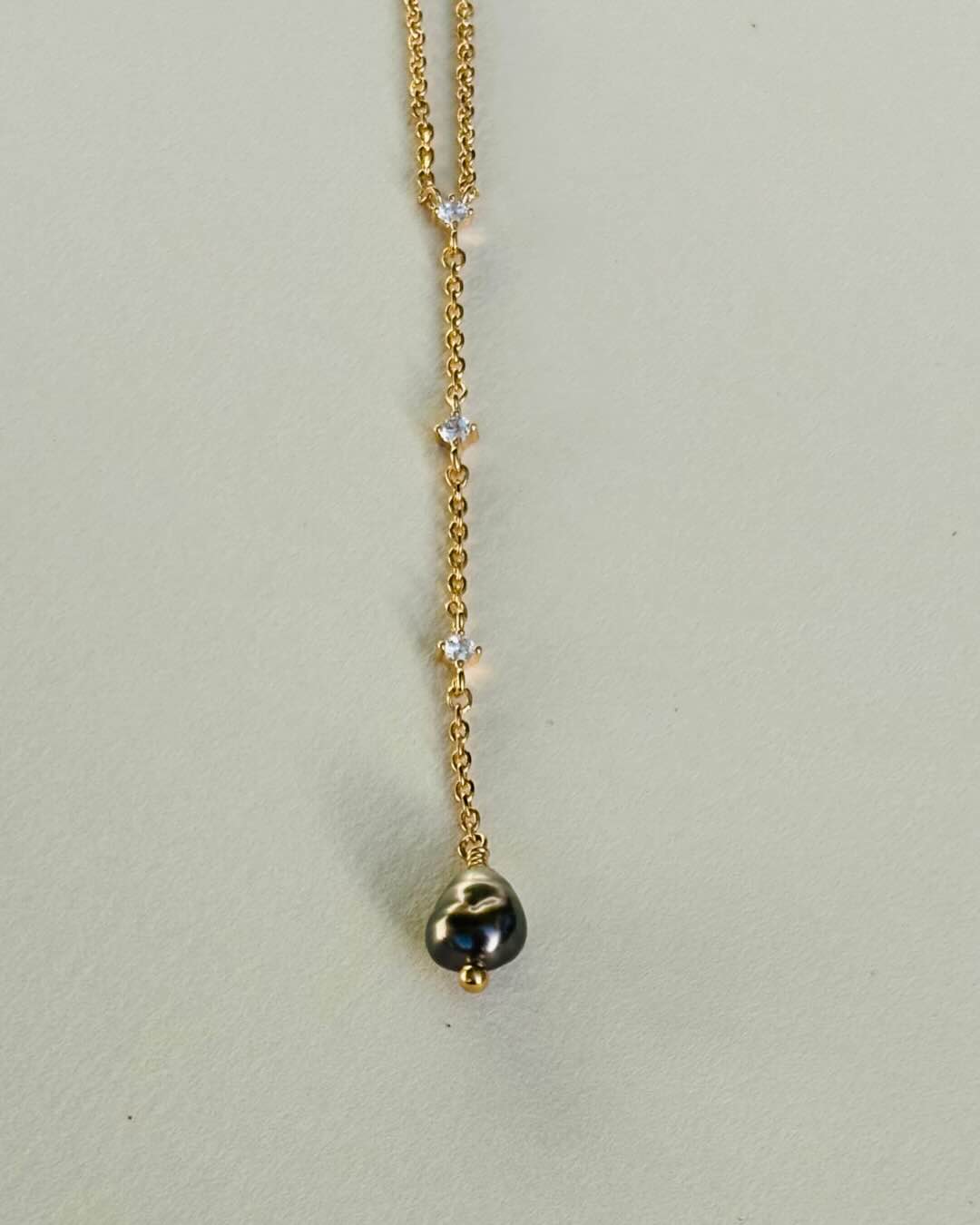Prix régulier €95,00Découvrez ISLA, notre nouveau collier cravate, conçu pour sublimer votre décolleté avec élégance. Ce bijou se compose d'une chaîne délicate en plaqué or français , ornée d'un trio de zircons étincelants et d'une superbe perle keshi de Tahiti .